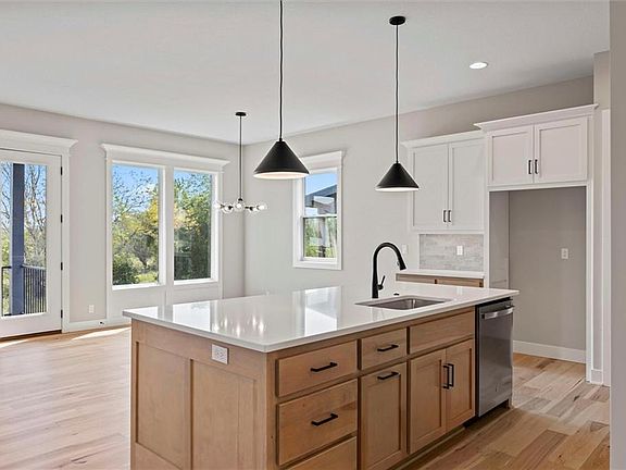 MOVE IN READY - Come check out Lot 99 and The Aiden Expanded by Lamendola Custom Homes! This beautiful 4 bedroom, 3 bathroom reverse has so much to offer! The first floor has a great kitchen, lovely primary suite, bedroom and/or office, a 3/4 bathroom, laundry and a great room. The lower lever has 2 bedrooms, full bathroom, large living area, and a fabulous bar with an island!! All situated on a daylight lot, with an oversized garage and 8ft tall garage doors. Close to schools, highways, shops and restaurants! Models Open Daily, 11 am – 5pm, and Sunday, 12-5pm. Visit the sales office at 12411 W 183rd Terrace, Overland Park. Come check it out! THIS HOME IS MOVE IN READY.