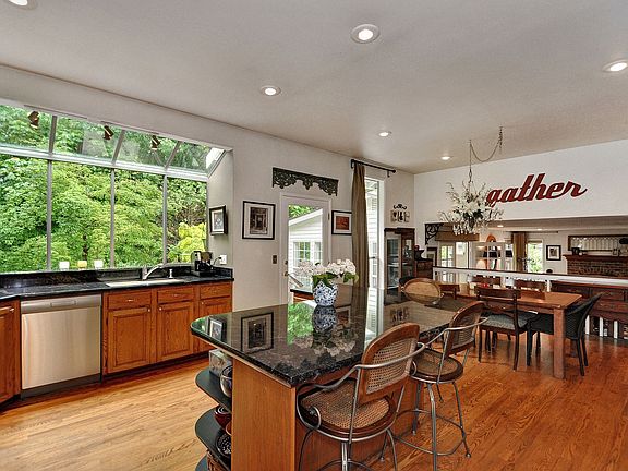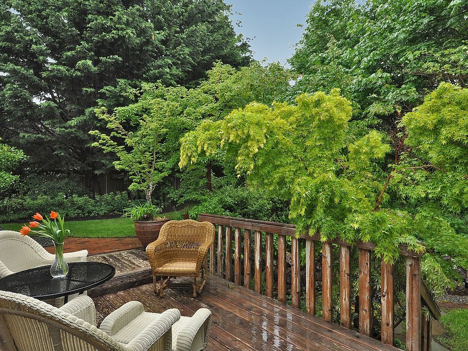 Enjoy the privacy & serenity of your own arboretum from this ideally situated home on a corner lot between a dead-end street and a cul-de-sac. Enjoy treed, peaceful outlooks from every window. Thoughtfully updated entertaining kitchen: slab counters, stainless appliance package & gas cooking. Elegantly appointed with high ceilings, hardwood flrs & new carpeting. Cape Cod-style family room with walls of windows on 3 sides where beach ambiance meets the lush greenery of a Pacific Northwest garden.