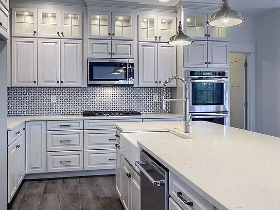 2021 newly constructed home in the sought-after Howard County school district. This home features a charming front porch, stone front features and is situated on a .97 acre lot. The open floor plan features 9' ceilings on the Main & bedroom level, a huge gourmet white kitchen with 42” cabinets, quartz countertop, all appliances, gas range & double oven, microwave built into cabinetry, a generous food pantry, a sunlit Morning Room, a first level family room with gas fireplace, a private office with French doors, a powder room, and an entrance foyer. The main level is primarily LVT Plank, which is both comfortable to walk on and durable, with a carpeted family room for warmth and added comfort. The upper level has three excellent sized bedrooms each with its own walk-in closet, a spacious main hall full bath and a master bedroom suite with sizable walk-in his/her closets, French doors into a full bath with dual sinks, a Venetian-style shower, and a soaking tub w/ jets. A separate, full-sized laundry room rounds out the upper-level space. The basement level is 1,600 sq ft where over half is finished with carpeted floors, an 8' ceiling, and a half bath. The exterior features landscaped grounds, 3 car attached garage, a covered patio space leading down to a ~700 sq. ft. stone paver patio complete with retaining/sitting walls, an extra-large custom fire pit, and lighting in the back. The home front consists of a covered front porch, a long driveway and a spacious front yard. This home also includes sprinkler system and whole house well-filtration.