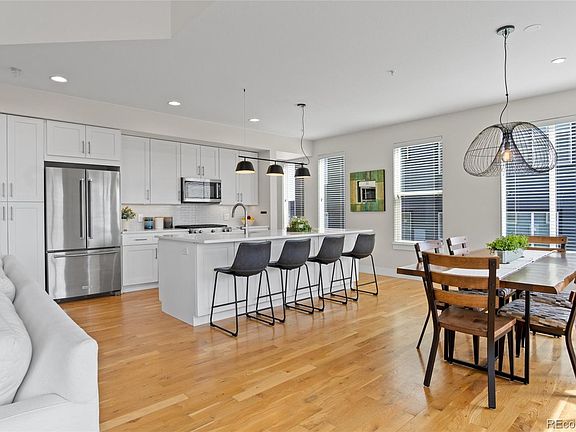 Rare opportunity to live in one of Golden’s premier neighborhoods, Bachman Farms! This stunning luxury contemporary paired home backs to open space, offers unobstructed mountain views, and sits just minutes from Apex Park, Green Mountain, South Table Mountain, and downtown Golden. For the mountain enthusiast you can be hiking, fishing or on the ski slopes in under an hour. Inside, natural light floods the open main level through expansive windows. The gourmet kitchen features crisp white cabinetry, quartz counters, a large island with seating, stainless steel KitchenAid appliances, and modern pendant lighting. The vaulted-ceiling living room boasts a dramatic floor-to-ceiling fireplace wall with custom-built-ins, creating the perfect gathering space. Upstairs, the primary suite frames sweeping mountain views and offers a spa-like ensuite with dual quartz vanity and an oversized walk-in closet. Two additional bedrooms share a full bath with floor-to-ceiling subway tile and a dual quartz vanity. Laundry room with built-in shelving, washer & dryer included. Savor your morning coffee or unwind with an evening glass of wine while soaking in amazing foothill views. The outdoor living space features a composite deck with pergola, a professionally landscaped yard, and elegant flagstone steps—all set against the breathtaking backdrop of Golden’s rolling hills. The HOA includes snow removal of driveways and sidewalks, general landscaping, and lawn mowing. Tucked away on a private cul-de-sac, this unique contemporary home offers easy access to Downtown Denver, Red Rocks, I-70 or C470, Denver International Airport, a paved bike/walking path to town, and all the best of Colorado living.