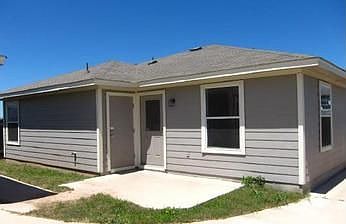 Adorable 4 bedroom home located in Manor! Kitchen is open to living room and features plenty of counter space and storage along with sleek black appliances including a gas range. Large living room is ideal for entertaining a crowd. Arched doorways and art niches add style. Master suite features a garden tub and separate shower. Stone-bottomed columns accent the front porch. Backyard with detached garage/workshop, privacy fence and extra parking space! ADA updates include 3 foot door openings and no steps.