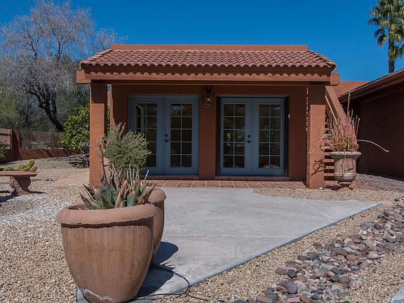 Custom Mexican Hacienda! Lovingly restored to capture the natural beauty of the large lot, courtyard/patio with water fountain and backing to an unlimited view of parkland. Main home is graced with large windows, Knotty alder doors, upgrades throughout with french doors spilling onto a rear patio. Casita allows for a quiet retreat for family, friends or home office. User friendly steps to viewing deck to capture 360 degree views. The two car garage and golf cart garage provides room for vehicles, and more!