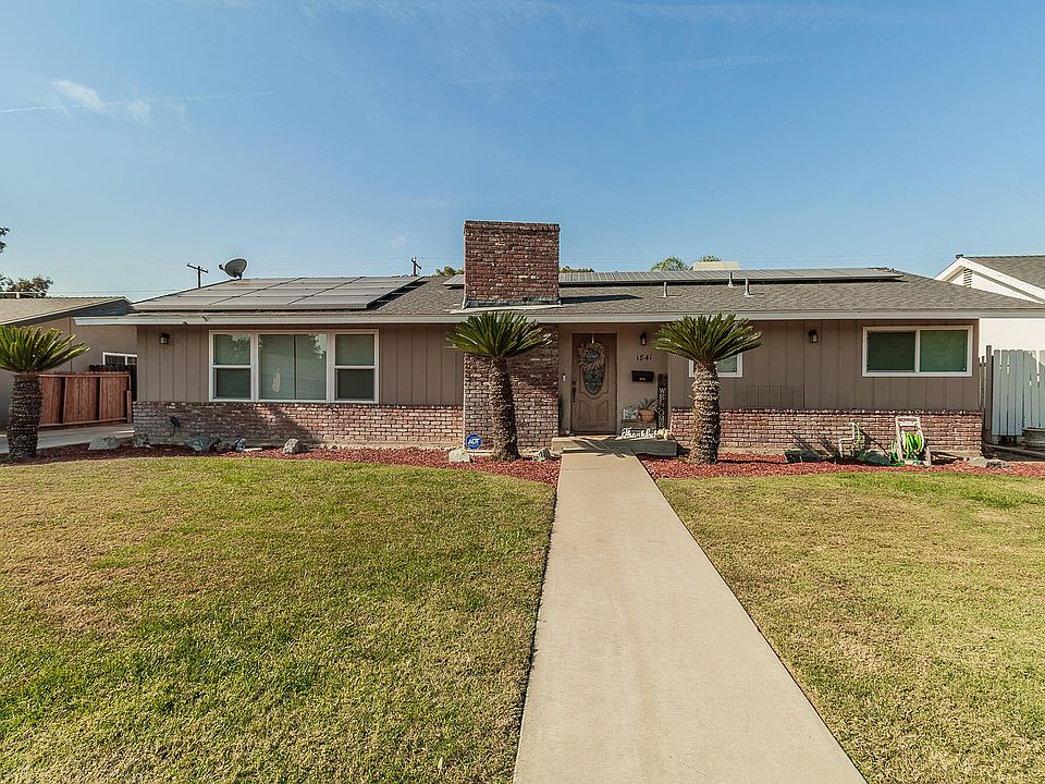 Here is your opportunity to purchase a quaint and affordable home in Kingsburg with pool. Just a few steps away from Kingsburg High School, this home has so much to offer. A large living area with fireplace. Kitchen with laminate flooring also has granite counter tops, gas range, microwave, dining area plus glass French door to patio. Tile floors are in entry, hallway and bathrooms. Hall bath has a tub shower combo as well as granite countertop. Large master bedroom with bath has a two-sink vanity plus a French door to pool area for convenience. Lots of fencing in backyard for your backyard needs. Pool is fenced separately from patio and additional fencing in backyard area for pets. A laundry room is located off the patio with sink. The pool equipment, is also located in a room off patio. Both rooms conveniently located. The garage is tucked away behind the home. You enter the garage from a front driveway leading to the back. There are two Solar systems on the home. One is owned and the other is a power purchase agreement. Perfect to keep your utilities under control.