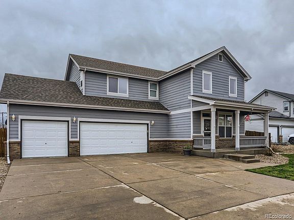 Welcome to this gorgeous home in Coyote Ridge! This property sits on over a quarter acre lot that features a peaceful front yard that includes an extended driveway, and a large three-car garage! As you enter the front door you are greeted by the living room with vaulted ceilings. The layout offers a perfect flow from the living room to the dining room, and into the kitchen. The kitchen features beautiful laminate countertops with lots of cabinet space and a doorway with a doggy door to the large backyard. Walk out to your expansive fully fenced-in backyard with a fire pit, a shed for storage, and a built in charcoal grill. Other features include updated lighting, additional storage and shelving in your 3-car garage, multiple office areas, and a powder bath. Upstairs, the large primary bedroom includes an ensuite bathroom and impressive closet space. There are two more bedrooms and a bathroom upstairs. Come on by and see this beautiful, move-in-ready home for yourself and enjoy all that Strasburg has to offer!