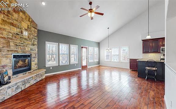 Gorgeous, luxury townhome in a small secluded community located just North of Monument Lake. Live and play at Monument Lake-in minutes you can go kayaking, paddle boarding or cast your line in the water to catch your dinner. Walk to downtown Monument shops and bistros. This is not your cookie-cutter townhouse or community! Ideal main-level living with secluded master suite with fireplace, brick feature & 5 pc master bath. The great room is filled with light from windows that overlook the patio and large tree-shaded green area. There many high end features, including a new highend front door; Travertine tile, walnut honed plank hardwood floors, granite counter tops, solid core doors, built-in laundry cabinets, crown molding, custom blinds and plantation shutters. Chef's kitchen has top-of-the-line new appliances including a gas range, raised kitchen island, large pantry, matching custom kitchen cart, extra outlets, stainless steel appliances, all open to the great room with gas fireplace. There is also a main level office that could also be used as a guest room. Out back, you will enjoy the lovely stamped concrete patio complete with with a gas stub out for your grill. Upstairs there are two more bedrooms with generous closets & an open family room. The garage is complete with heavy duty shelves for your extra stuff. It has a high-efficiency 2016 Trane furnace with an electrostatic whole house air filtration system. Low dues, too! Don't miss your rare opportunity to make this yours!