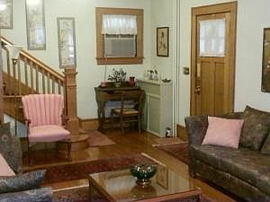 Beautiful home in Raleigh Court within walking distance of Grandin Village, all schools and churches. Large great room, dining room and sun room with 9ft. ceilings and natural oak trim. A finished recreation room with masonry fireplace and finished attic with walk-in cedar closet provides four levels of comfortable living space.