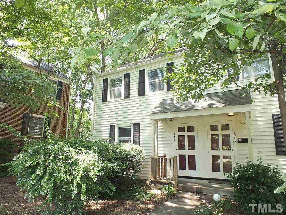 Great end unit Townhome style condo in Cameron Village! Opens into large den and dining room. Hardwood floors throughout. Nicely updated kitchen. Upstairs are two good size bedrooms w/double closets & share tiles hall bath. Nice deck in rear overlooks shared courtyard. All appliances, stackable washer/dryer & water/sewer/trash included. Walk to Cameron Village in seconds!