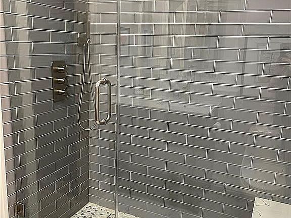 Updated Single story rancher. Completely remodeled baths with new window, toilet, vanity with marble top, tile floor, glass tile shower w/bench topped with marble, frameless glass shower door, European fixtures, mirror, sink. Exotic African Mahogany hardwood floors in kitchen, dining room, living room, entryway, and hallway (includes thresholds)