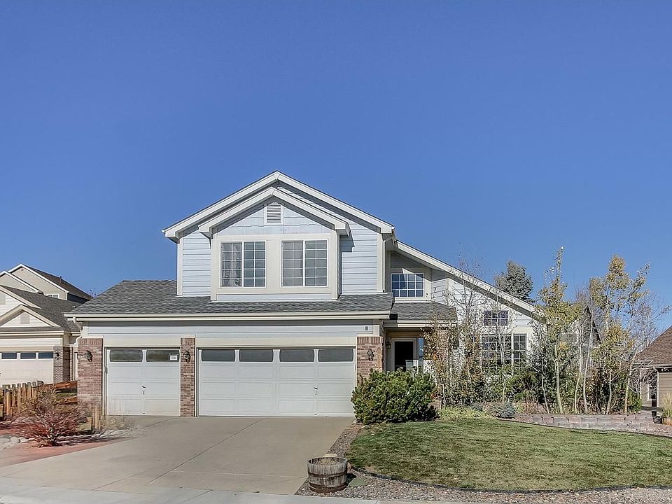 Spacious Two Story home situated on a cul-de-sac in the Red Hawk Community perfectly situated for entertaining and casual living. Main floor boasts Master Suite, Kitchen, Dining Room, Family Room, Study, Half bath and Laundry Room. The Second floor encompasses three additional bedrooms all with walk-in-closets and a full bathroom. Completing the house, the basement adds a fifth bedroom, three quarter bath, expansive rec room with built in entertainment center (TV included), Wet Bar and ample sized storage room. A large private concrete stamped patio is adjacent to the kitchen nook which opens to a spacious yard. Located in Castle Rock with close proximity to trails, restaurants, shopping and much more!