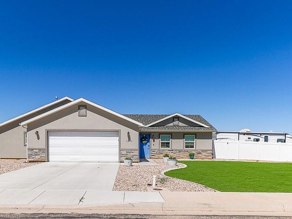 Located in the Hunter Glen subdivision! 1,625 sq ft one-story home situated on a spacious .27 acre lot. It comprises 4 bedrooms, 2 bathrooms, and an oversized 2-car garage. The property is fully fenced and equipped with RV hookups. Inside, the home boasts quartz countertops, custom knotty alder cabinets, stainless steel appliances, and built-in cabinets in the laundry room.