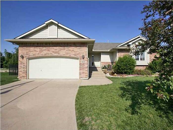 Great buy! Located in Windwood Addition and in the desirable Maize School District, specials just paid off! This 11 year old ranch is situated on a cul de sac waterfront lot, with a fenced yard, sprinkler system, wood deck, and has a walkout basement. Vaulted ceiling, two fireplaces, large eating bar and pantry in kitchen. Large master bedroom with walk in closet, master bath has double sinks and a separate jacuzzi tub and shower. 2nd bedroom on the main floor has a door to the back yard and a separate deck area, with an additional door off of the dining room. Large family room in finished basement with wet bar, large 4th bedroom and also a large storage room. This home does need a little TLC, but priced accordingly. SHOW & SELL! BACK ON MARKET 2-5-13!!!!!