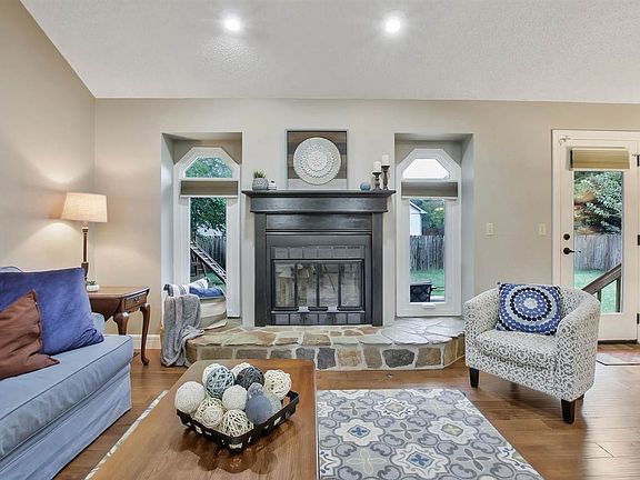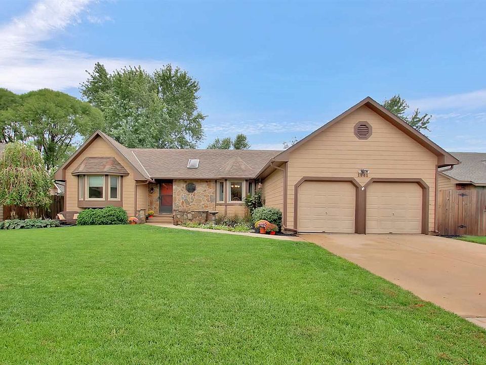 Wonderful West-side neighborhood close to a huge park, shopping, and in the Maize School district! Be greeted at the door with vaulted ceilings and engineered wood floors in the open living space with fireplace for the chilly evenings! Split bedroom plan has a large master bedroom with beautiful ensuite bath complete with twin basins in granite. The kitchen has an eating bar, pantry, all kitchen appliances stay, and great view to the fenced backyard. The living room also has a line of sight to the back as well! The main floor is finished with two more bedrooms (one with bay window), formal dining, hall/guest bath, and the main floor laundry. The basement features a hug family/rec room with large daylight windows, one more bedroom (#4), BONUS room, and bath! Fresh paint throughout the majority interior of the house, home warranty in place, and is ready for immediate possession! The backyard is fully fenced and has a patio ready for a fire-pit!