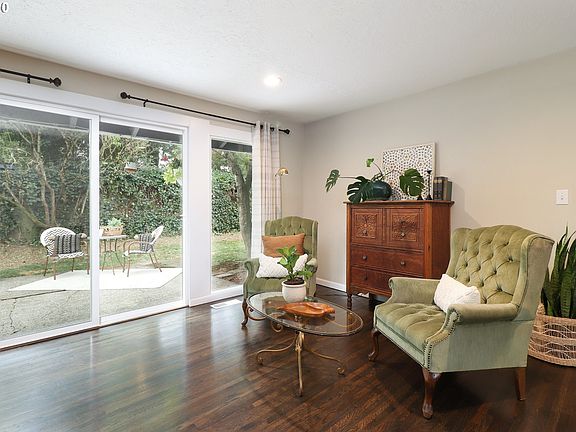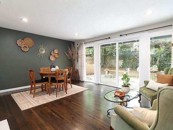Lovely Ranch Style Home on a Corner Lot. Enter to beautifully refinished hardwood flooring. Kitchen features quartz counters w tile backsplash, and all stainless steel appliances. Wood-burning fireplace in living w access to back patio that opens to dining. 2nd fireplace in family w built-ins, exterior entry, and access to laundry. Fully fenced backyard features ample patio and yard. Covered front porch available. Driveway on side w access to storage. See v/Tour for links to more info! [Home Energy Score = 2. HES Report at https://rpt.greenbuildingregistry.com/hes/OR10151308]