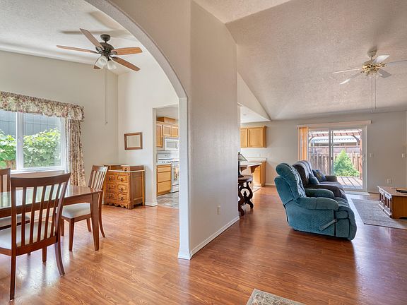 Highly upgraded single level home with a great room layout that has a separate family room with formal dining/entertainment area. Once inside you are greeted by vaulted ceilings throughout, skylights, newer flooring, and a kitchen that features a breakfast bar and expansive countertops and cabinets. The primary suite has a large walk-in closet, room for a king bed, end tables, and another TV area and the bathroom has a walk-in shower & double vanity. Both guest bedrooms easily fit a queen bed and one is being utilized as an office. Passing through the very functional utility room leads to the double attached/insulated garage. The landscaping is in perfect condition with a sprinkler system, fenced backyard, mature trees, storage shed, & a newly painted back deck with pergola to take it all in! Additionally, the home is heated with central gas heat and AC for the hot days to come, has new windows as of January 2024, water heater was replaced in 2021 & a new roof is being installed now!