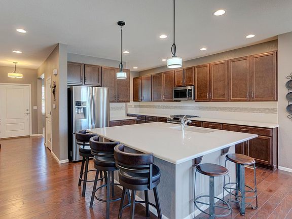 Welcome To This Fantastic Home With Amazing Finishes! This 4 Bedroom, 3 Bath Home Plus Loft Has a Main Floor Bedroom/Study With 3/4 Bath. Rare, 4 Car Garage Has Room For All Of Your Cars, Toys & More! Upon Entering, You Will Be Greeted With Beautiful Flowing Hardwood Floors. The Open Concept Kitchen and Family Room, Along With A Formal Dining Room Provide The Perfect Space For Entertaining. The Kitchen Boasts A Large Island, Quartz Countertops, Tile Backsplash, Gas Stove, Cabinets With Pull-Outs And Stainless Steel Appliances. The Family Room is Vaulted and Pre-Wired for Surround Sound. The Upper Level Has 3 Bedrooms, A Convenient Laundry Room, Loft, And 2 Bathrooms. The Master Retreat Has a Tray Ceiling, Walk-In Closet, and Master Bath With Custom Enlarged Shower and Skylight. The Unfinished Basement is Ready For Your Finishing Touches Or Extra Storage. You Will Love Spending Time Outdoors On The Large Stamped Patio. Easy Walk To Union Reservoir & Ute Golf Course.