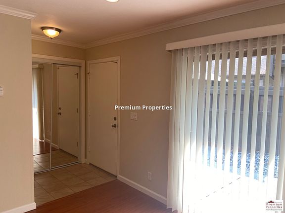 Gorgeous single level condo completely updated with granite counters and updated kitchen. It has approx. 900 square feet of living space and is close to shopping and restaurants. Entry with large mirrored coat closet and living room with large slider to front patio, recessed lighting, crown molding and updated baseboards. Informal dining area is between living room and kitchen with updated fan/light. Plenty of room for dining table and chairs. Kitchen is gorgeous and features granite counter tops with breakfast bar between kitchen and eating area, tile floors, stainless steel fridge, dishwasher, 4 burner flat electric stove and oven, dishwasher and garbage disposal. Cabinets have self closing drawers. The hall bathroom is nice. It features a single sink and vanity with lots of drawers for storage, shower over tub and tile flooring. Full sized, front loading washer and dryer are behind the door with shelves above them. Bedroom 1 is good sized and features large sliding closet doors. The master bedroom is also good sized and has a nice walk-in closet. This is a great unit, with a great location! It features central heat and A/C, 1 covered carport parking space with wall storage area, access to community pool and tennis courts! Water and Garbage service included with rent. Lovely exterior enclosed patio. No smoking. No pets. Please call Darcy with Premium Properties (925) 286-4891.