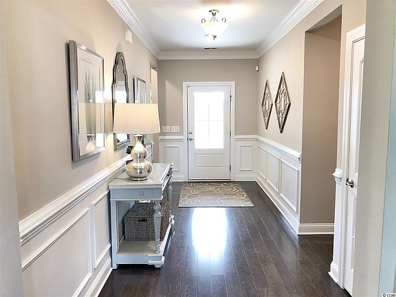 Welcome to Park Place in Market Common, a Natural Gas community that offers walkability and golf cart access to the beach, shopping, dining, entertainment, and weekly downtown events! This available home is the Savannah plan. With James Hardie Fiber Cement Siding, this 1-story, 3 BD, 2.5 BA home includes a rear screened porch, formal dining space, vaulted ceilings, tray ceiling and bay window in master bedroom providing an exquisite open-concept. Kitchen features 42" white cabinetry, quartz countertops, pendant lighting, tile backsplash, and stainless Whirlpool appliances. Wood flooring in main areas inclusing bedrooms and tile in all bathrooms and laundry. The master bath features our signature Zero-Entry Spa Shower, double vanity, and oversized walk-in closet. Washer, dryer, fridge, blinds, make this home move in ready! Designer trim package of chair rail, picture frame and crown moldings are included. Come tour this home today! We are currently OPEN by appointments only at this time. Call Today! Thank you!!!! *Pictures shown are from previously built homes. Information listed is subject to change.