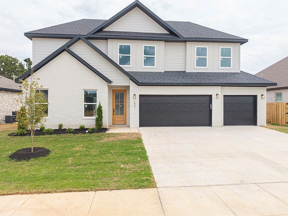 Step into style with the Hibiscus plan—4 beds, 3 baths, and a layout that blends luxury with everyday function. Main level features a spacious primary suite + guest bed/bath. Upstairs offers 2 more beds + full bath. The kitchen stuns with quartz countertops, custom cabinets, SS appliances, and eat-in dining. Open-concept living with LVP flooring and designer lighting. Located in a growing community with Phase 2 amenities coming soon: pond, trails, pool, and clubhouse. Minutes to XNA and under 20 mins to Downtown Bentonville. North-facing home. Taxes based on lot value. Move-in ready and easy to show—schedule your tour today! Some images have been virtually staged to show potential use of space.