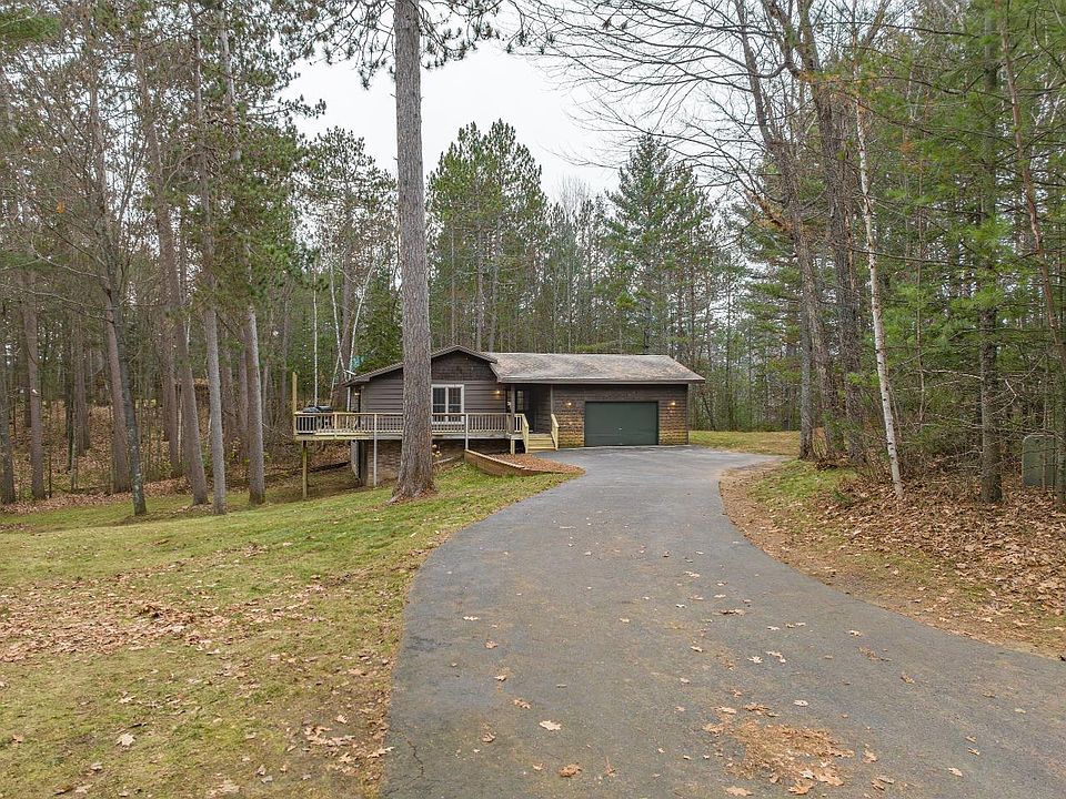 Welcome “Home, Sweet, Home!” Located just outside of Eagle River city limits on down a private road sits this 2,250 sq. ft. 3BR/2BA home on 1.6 acres. Not only does it have all the basics but it also has a 10’ easement access to the Wisconsin River, part of the Eagle River Chain. For outdoor enjoyment it boasts a large rolling green lawn, black top driveway the wraparound deck and lower level walk out patio. The inside meanwhile is cute as a button and neat as can be. The open concept kitchen/living/dining has a huge butcher block kitchen island, with crown moldings and 6 panel pine doors throughout the home for character. The 2 main floor bedrooms each have walk in closets, as does the lower level bedroom. Other extras include a walk out basement, office, bonus room, and 2 car attached garage. Schedule your showing today!