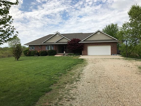 Remodeled walkout ranch on 25 acres just 2 miles west of town. Two ponds, lots of fruit and flowering trees, nut trees, new roof (2016), steel siding. Beautiful views from many windows in house or from large deck. Perfect for seeing deer, turkeys, quail. Markowitz custom built home with large rooms, hardwood floors, crown molding, John Deere room, lots of closet space, granite countertops, Pella windows, 9 ft ceilings throughout with vaults in living, dining and master, 2 fireplaces, and much more. Will work with buyer's agent.