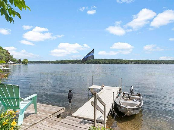 Looking for a home close enough to the water you can be swimming as spontaneously as you want? How about the waters edge of stunning Lake Charlevoix rippling at the end of your driveway? Sound close enough? This immaculate craftsman style chalet is a turn key opportunity. With beautifully crafted three-sided decking, meticulously maintained landscaping, large 2+ car garage, and expansive arched bay Anderson windows, one can be proud of its curb appeal. Pristine interiors are spotlighted by plenty of natural light, a cozy and spacious loft with an extra space to finish off as a future bunkhouse or an extra bedroom, perfectly functional utility room, and bright open kitchen. Beautiful Elm Pointe Park is just a skip, swim, or paddle away! Bring the family, bring your water toys, and stay as long as you want!