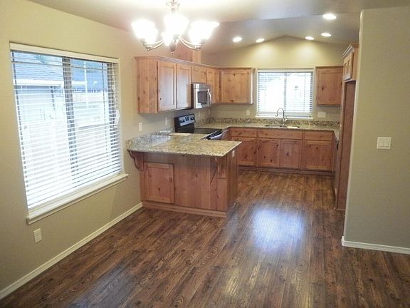 This lovely 3 bedroom, 2 bath home built in 2013 features vaulted ceilings, beautiful hardwood floors in dining room & kitchen. Kitchen features granite counter tops, stainless steel appliances and ample cabinets. Master bedroom with walk-in closet, bathrooms with granite counter tops, central heat & air, covered back patio, fenced back yard & attached double car garage. Tenant responsible for all utilities. Professional Landscaping is provided. NO PETS/NO SMOKING. 1 year lease is required - $35.00 application fee per adult applicant. $1395.00 per month + $1500 security deposit. Call Rogue Valley Property Management & Real Estate Services, Inc to schedule an appointment to view this home.