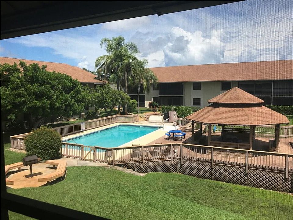 Beautifully updated 3 bed 2 bath condo, second floor overlooking pool. Custom kitchen with large island and lots of storage. Open concept, unlike original units. Bathrooms recently remodeled. Cathedral ceilings and large walk in closet in master. Unit also has a large screen porch with sliders from the living room, master bedroom and door from second bedroom. Hurricane shutters for all windows and custom blinds on porch and sliders. Ceiling fans throughout condo. Washer/dryer new 2016. Well maintained condo is move in condition. No age restriction. One pet allowed under 25 lbs. Location is close to Downtown Stuart, located in the City of Stuart.