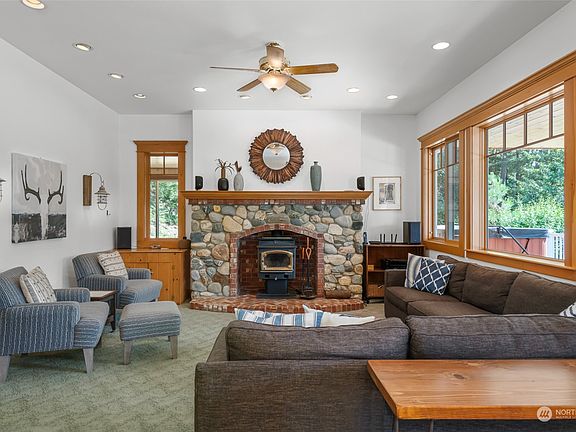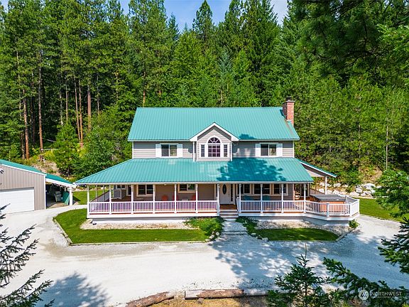 The perfect residence or vacation home in Plain! Set on 20 forested acres, you'll enjoy both exceptional privacy and a home that functions substantially larger than what the square footage indicates. Spacious great room, lovely kitchen with center island, 3 bedrooms, 2.5 baths, home offices on the main floor, second living space upstairs. and includes the furniture so you can enjoy your stay the day you close! Relax on the covered wrap-around porch and watch the stars at night in the hot tub. Lightning-fast fiber internet, detached garage for your recreation toys, and so much extra space for your future ideas. 5 minutes from Plain Hardware, 10 minutes from Lake Wenatchee, and 25 minutes from Leavenworth.