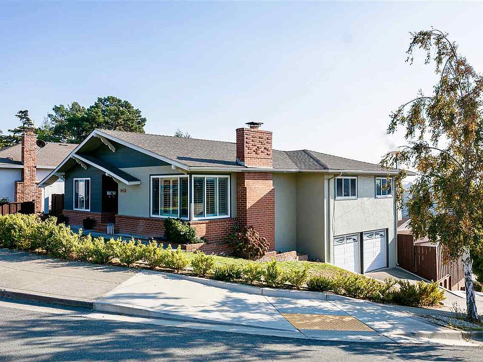 PANORAMIC VIEWS - LAKE CHABOT CLOSE. This stately, immaculate home has room for everyone in your family! On the MAIN LEVEL are 4 bdrms, 2 remodeled baths + bonus room for office/crafts, large sunny living room w/brick fireplace & big corner windows, separate formal dining room, and updated eat-in kitchen w/greenhouse window, tile floor & granite counters. DOWNSTAIRS features a roomy & bright family room offering potential for in-law quarters, a 1/2 bath, laundry room w/sink, storage & 2 doors accessing the backyard. The elevated corner lot provides "tree house" privacy, abundant natural light, and a sweeping view of CV out to The Bay. The spacious backyard features apple/lemon/lime trees, low-maintenance decking, & plenty of room for gardening and kids play. Dual-pane windows, composition roof, insulated garage doors, rich wood-laminate flooring, and much more. Home is pre-inspected & Sewer Compliant. Walking distance to Scenic Lake Chabot, Public Market, Schools, FWY/BART.