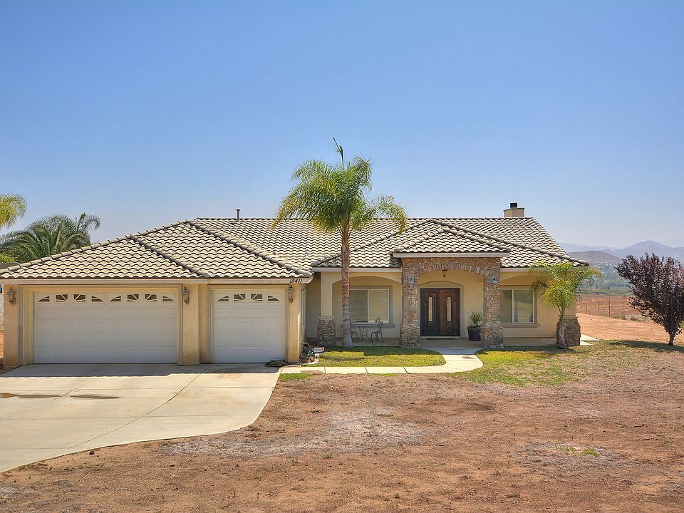 Spectacular Ranch Style Single Story home tucked away in the desirable WOODCREST AREA OF RIVERSIDE. Experience unparalleled privacy & unsurpassed modern upgrades including rich, dark wood flooring, crown molding, & ambient recessed lighting. The open layout coupled with tall ceilings makes the living & dining areas larger than life. The elegant gourmet kitchen is elaborately equipped & prepared to handle your every culinary feat with large center island, gorgeous granite counters, cabinets and butler's pantry. The kitchen opens up to a spacious family room with a striking wood fireplace that becomes an instant focal point, creating a cozy gathering place on chilly nights. You'll fall in love as you walk into the large master bedroom with engineered laminate floors, walk in closet, gorgeous custom tiled shower and jetted spa tub. The remaining three large bedrooms in the home are very well-appointed with lighted ceiling fans, while all bathrooms have been upgraded with granite counters, and new fixtures & cabinetry. The oversized laundry room has amazing dimensions ready for all your projects. This home is off the beaten path which makes it quiet and still in the evenings and perfect for horses, toys or an RV. Amazing City and Sunset Views of the back patio in the evenings make this home your safe haven! This home has so much to offer.