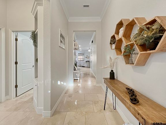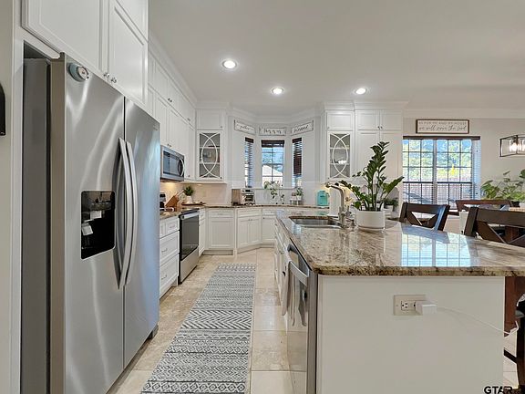 Welcome home to this stunning energy-efficient, foam-insulated one-story gem, perfectly designed for comfort, style, and quiet country living just minutes from Lake Palestine marina. This 3-bedroom, 2.5-bath beauty features an open-concept kitchen and living space, ideal for entertaining or cozy nights in. The kitchen is a showstopper, boasting a granite island, stainless steel appliances, and all-white cabinetry that stretches to the ceiling, complemented by a sleek subway tile backsplash and a 10-foot walk-in pantry for maximum storage. Crown molding throughout adds an elegant touch, while travertine floors flow seamlessly through the main areas, with plush carpet in the bedrooms and closets for added warmth. The master suite is its own retreat, featuring his-and-hers vanities, a luxurious bronze rain shower with a built-in bench, and a spacious Roman tub jacuzzi—pure relaxation at its finest. The master closet is a dream, offering maximum storage with built-in dresser and shelving, providing the perfect blend of functionality and organization. The exterior is just as impressive, with a beautiful incline driveway leading to a spacious 500 sq. ft. two-car garage, while the Bristol Oak brick and Austin White stone elevation add timeless curb appeal. French drains have been recently added to the backyard, and the stained fencing enhances privacy and charm. A covered patio invites you to unwind or fire up the grill, making it the ultimate spot for outdoor entertaining, and with the adjacent lot included in the sale, you’ll have even more space to enjoy. Offering peaceful country living with easy access to Lake Palestine, this home is truly a rare find—beautifully designed, meticulously maintained, and move-in ready!
