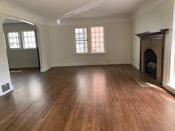 At the rear of this unit there are 2 good sized bedrooms with contemporary ceiling fans. Central Heat and Air Conditioning. Garage Parking and small yard out back. Designated washer and dryer in basement. Landlord pays sewer and water. Tenant pays gas + electric.