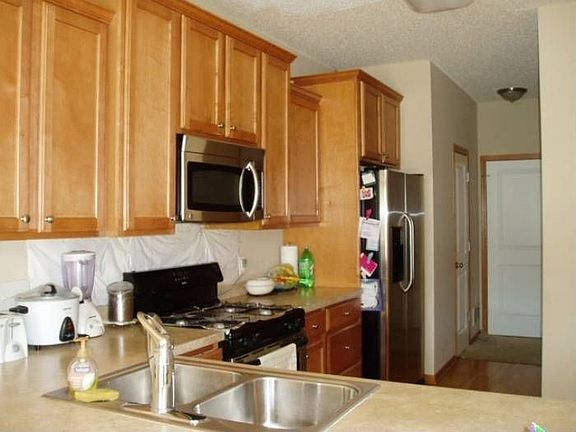 Great 3bedroom+loft, 3 bath end unit town home with over 1750sq feet of space!Main level hosts an open kitchen, dining room and living room with gas fireplace. There is 1/2 bath and additional storage space on this level.The upper level has 3 large bedrooms, a 12x8 loft space, washer and dryer and 2 full baths. Master is large with walk-in closet. Home will be repainted before move-in. Available July 1st. Lawn, snow and trash included in rent. Call 612-245-0088 for a showing. Marketed by licensed Bridge Realty Agent. Long-term lease specials. Application fee.