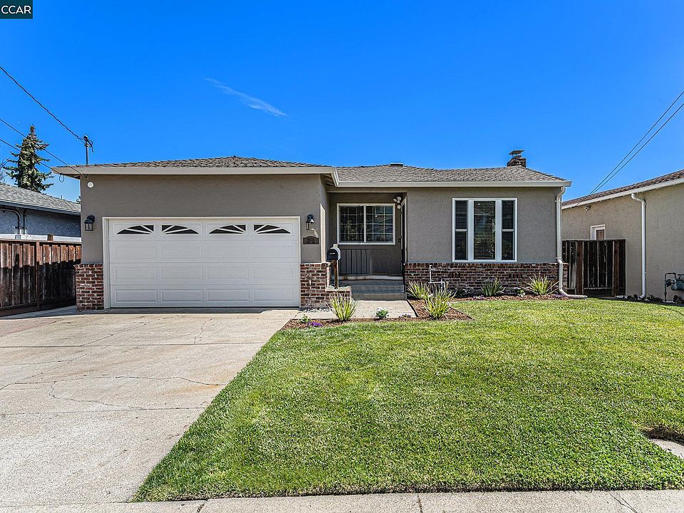 Just Move In! This beautifully updated & meticulously maintained family home with 1,064 sq ft of living space, boast 3 bedrooms & 1.5 baths. Features include formal living & dining room with fireplace, recessed lighting, gleaming hardwood flooring throughout, new light fixture & picture window. Kitchen has been remodeled with granite counters, custom cabinets with glass accents, free standing gas stove, microwave & door to backyard & another to garage where you will find the laundry room & 1/2 bath. Remodeled hall bathroom with shower over tub & granite counter & surround. Central heat & air (2021).The backyard is great for entertaining, gardening or play with patio & lawn area. Partially finished 2 car garage with storage, new front landscaping & drip system for plants. Close to Chabot Lake, all transportation & schools. All this & so much more! Open Sat 4/20 1-4 Sun 4/21 1:30 to 4