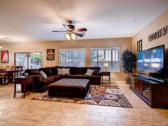 Location, Location, Cul-de-sac Location! This 3 Bedroom, 2 Bathroom, 3 Car Tandem Garage home with RV PARKING allowed resides in Savannah's only cul-de-sac! The home features a spacious great room layout perfect for entertaining with a kitchen boasting upgraded staggered cabinets, granite counters, tile backsplash, stainless steel appliances, gas stove, and a huge walk-in pantry. Neutral paint, tile floors, plantation shutters, covered patio, surround sound pre-wiring, large laundry room, soft water loop, and 3 car garage with cabinets are all included! This home has an expansive custom designed backyard w/fire pit and a horse shoe pit. There is plenty of sideyard for storing your RV or Camper! The cul-de-sac location is near the largest neighborhood park/greenbelt in the neighborhood!