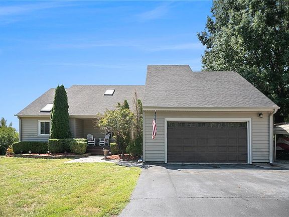 Experience your own sanctuary on 5.2 acres, complete with a private pond. Own a bit of Heaven. This 1.5-story reverse contains just under 4000 square feet and other desirable amenities. The main level features soaring ceilings, an open floor plan, a primary suite, an office with wall-to-wall windows, and two decks with panoramic views for days. The tastefully refurbished kitchen boasts stainless steel appliances, a gas stove, granite countertops, an island, and plenty of cupboard space. This open floor design is perfect for family gatherings and inviting guests. Don't miss the spacious loft upstairs, which provides unlimited possibilities. The primary suite has a private martini balcony, an office entry, and a spacious, nicely refurbished bathroom with two walk-in closets, an oversized tub, a large shower, and separate vanities.