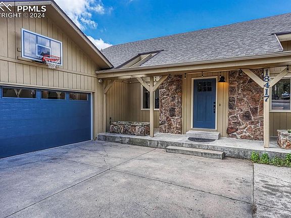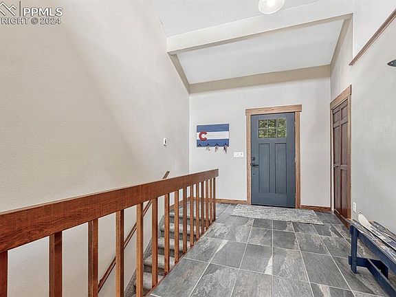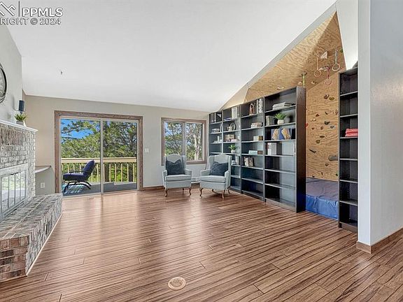 Discover this incredible opportunity to own a charming ranch-style home in the coveted Woodmoor neighborhood. Nestled on a quiet cul-de-sac, this property backs onto dedicated open space and Gregs Pond, offering stunning views of Pikes Peak, a serene seasonal pond/green belt, and lush trees, providing ultimate privacy. Open and Airy Layout: The great room features a vaulted ceiling, cozy fireplace, beamed ceiling, and built-ins. Enjoy the great room concept for the dining room, kitchen, and main level walkout family room. Step out onto the wrap-around back deck to soak in breathtaking views of Pikes Peak. Gourmet Kitchen: The kitchen boasts a cooktop, stone countertops, a new double oven, and cabinet-matching built-in fridge and dishwasher. A large pantry/mudroom with access to the garage and deck is perfect for storage and as a drop zone. Main Level Living: The primary bedroom is conveniently located on the main level. The spa-like primary bathroom features a zero-entry shower with floor-to-ceiling tile, a free-standing soaking tub, soaring ceilings, and a decorator shelf. A laundry room and half bath are also on the main level. Adventure Ready: Discover your own indoor climbing room, perfect for Colorado adventure training. Expansive Lower Level: The basement includes four additional bedrooms, two extremely large storage spaces, a remodeled full bath, and an enclosed hot tub room. Bedroom number four could serve as an entertainment/rec room with walkout access to the patio and backyard. Prime Location: Located in esteemed D-38, close to shopping, trails, schools, the Air Force Academy, and I-25.Don’t miss this rare gem in a fantastic location, offering a perfect blend of comfort, elegance, and adventure.