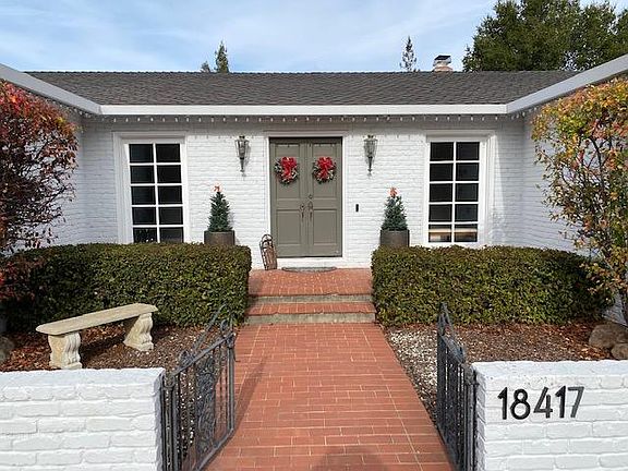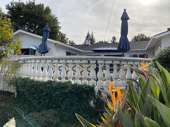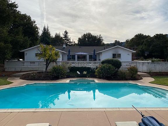 Classic executive single level Colonial home with circular driveway on 1 acre lot with pool in the estate area of Monte Sereno / Los Gatos, situated on beautiful and very quiet street with impressive homes. Major recent remodeling, designer hardwood floors and ceramic tile throughout, elevated ceilings, superb new kitchen with granite countertops, 8' center island with sitting, professional range, pantry, wine cooler, butler's pantry, open to a 1200 sq ft terrace for entertainment with view of the pool. New master bathroom with design fixtures. Great entrance hall with designer ceramic tile, very large Living room with vaulted ceiling, nice, large bedrooms. Large garage can be used as additional game room. Short drive, bike or electric scooter ride to the great Los Gatos schools, nearby shopping and Los Gatos or Saratoga downtown. Great for entertainment and kids. Beautiful 1,200 sf back terrace with French balusters and integrated drip irrigation for pots, overlooking the large heated pool, Jacuzzi and gazebo with great views of the mountain. Two car garage and lots of parking, separate large protected area for RV or boat parking, etc. Low water landscaping. Plenty of space to practice your love for gardening or plant your vegetable garden. Owner pays for gardner and pool maintenance
