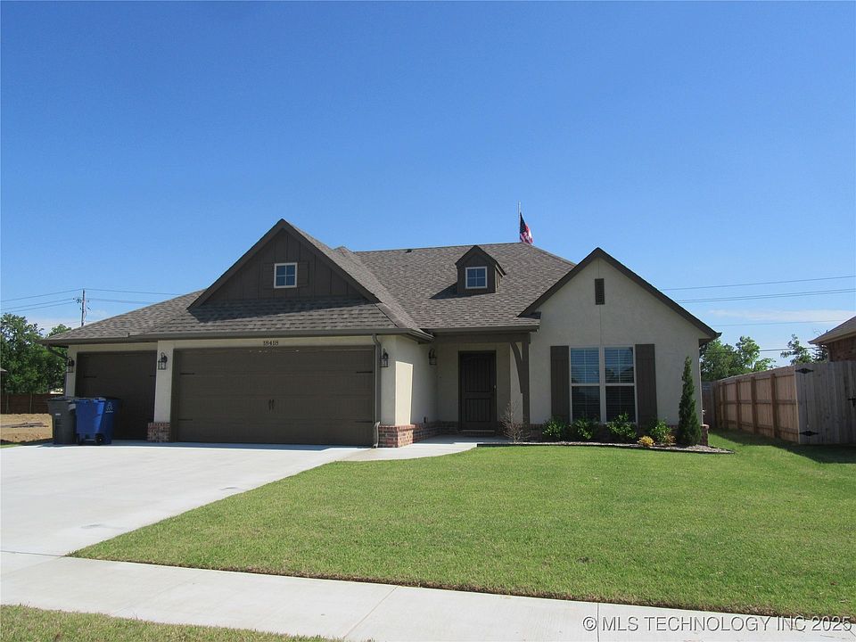 Gorgeous 3 bedroom with study. Broken Arrow Schools! 3 Car garage. Open floor plan. Beautiful vaulted beamed ceiling with corner rock fireplace and beautiful kitchen with granite counter tops. Hard wood floors. Split bedroom plan. Covered patio. Fenced yard.