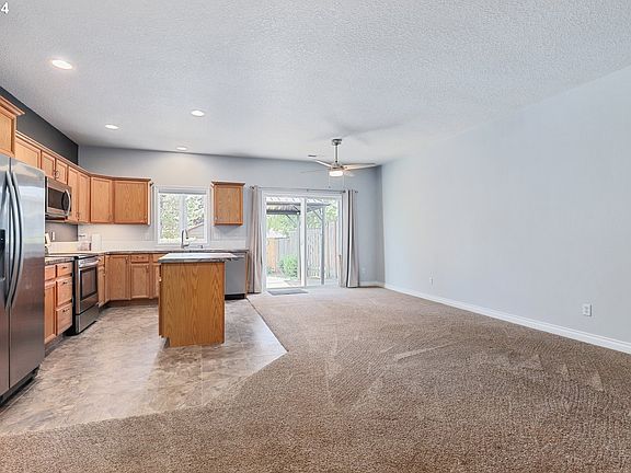 Welcome to this better-than-new townhouse in the heart of Beaverton! This meticulously maintained home offers a blend of modern comforts and stylish design, perfect for those seeking a vibrant yet peaceful living environment. The spacious, open, and bright layout is complemented by a great room floor plan with a fireplace, creating a warm and inviting atmosphere. Designed for gatherings, the kitchen boasts a large island with an eating bar, ample counter space & newer appliances, making it a chef's delight. The wide-open stairway leads to a spacious primary suite, featuring double sinks and a relaxing tub. Two additional bedrooms with vaulted ceilings, a second full bathroom and laundry closet complete the upstairs. A slider off the dining room opens to a fenced, low-maintenance backyard with covered patio, ideal for year-round entertaining and relaxation. Fresh paint inside and out! Enjoy the convenience of low HOA fees at just $100 per month, which include front landscaping. This townhouse offers a prime location for enjoying the serene surroundings and convenient access to local amenities, shops and restaurants are right around the corner. Easy access to Hwy 217 & Hwy 26.