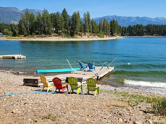 One of the premium lots on Echo Lake (MT state lease)! Enviable, gentle beach 190 foot long with dock faces E-SE and has stunning views of the Swan Range and across the lake to the Echo Lake scenery. Enjoy the sun in the morning and gorgeous alpenglow at sunset. Seasonal 14 x 66 mobile home has been kept in good condition and is a fun waterfront get-away with 3 bedrooms and 1 bath. A large deck is your additional outdoor "living room". There are two RV electrical hook-ups; One hook-up is right by the home and the other is up above and across the road in a convenient pull-through driveway. State Lease transfer requires approval of new lessee and an orientation. Lease goes through Feb 2037 and is $12898 for 2023 - See documents for full lease terms and the annual set increases. Many of the furnishings will be included. Call Diana Rahdert at 406-250-5594 or your real estate professional.