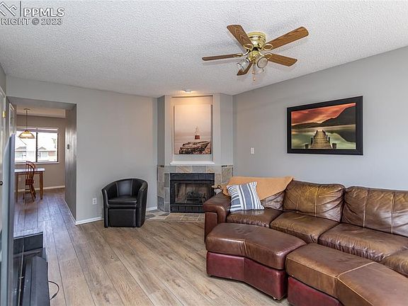 Awesome townhome boasts many updates including luxury vinyl flooring on the main level, new furnace, stainless appliances and so much more. The main level includes a living room with wood-burning fireplace, half-bath, and kitchen with eating nook and counter bar plus a walk-out to a deck. The upper level offers the master bedroom with attached full bath and an additional bedroom that can also be used as an office. The basement is partially finished with ceramic tile floors and drywall and could easily be fully finished. A mounted bar sets up a game room concept and there is a walk-out to a concrete patio. Excellent central location with easy access to Academy Blvd. and I-25.