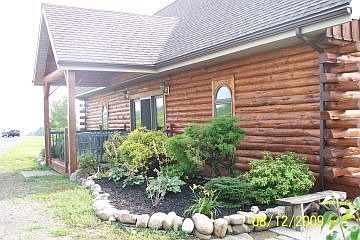 Warm and welcoming.... describes this Log home overlooking the Valley. The Oak kitchen has lots of cupboard space, center isle, and plenty of counter space. View the valley from the dining room. The large living room with cathedral ceiling, stone fireplace with propane insert and lots of windows lets you entertain, or just sit cozy on the couch. Master bedroom and bath with a shower conveniently located on the main floor. From the covered front porch, enter into the Main entrance foyer with 1/2 bath. Upstairs are two large bedrooms with closets, and another full bath. The basement offers additional family room, and opportunity to finish off more space, or just use as a craft room. Laundry located in basement. Coal stove in basement is also available for heating, along with the propane forced air system. Lots of space also in the 3 bay detached garage with 2nd floor storage. A must see for the Country lovers.... (Internet 5742450-10/24/2010)