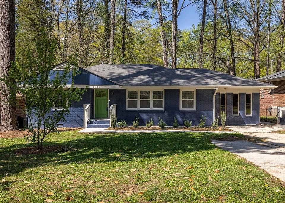 Welcome home to this thoughtfully updated ranch, just steps from Longdale Park. 1842 Longdale Drive features three spacious bedrooms and two full bathrooms in a convenient roommate layout with gleaming (refinished) original hardwood floors, vaulted ceilings, a white kitchen with stainless appliances, and granite counters. The primary bedroom is HUGE and the ensuite bath'll bowl you over! Seriously, check out that tub! All systems, appliances, and the roof were replaced in 2019 with a total renovation, and the sellers just painted inside and out and refinished the hardwoods to bring this beauty to market. And lest we forget, check out the back deck and big, fully-fenced backyard. Seriously, this house has it all. Editor's note: The color is a beautiful navy blue - Sherwin Williams Naval. It looks weirdly brighter in the photos! The neighborhood is conveniently located just south of the East Lake Golf Club, near Publix on Glenwood. Easy access to Kirkwood Village, Oakhurst Village, Hosea+2nd, Downtown Decatur, and I-20. Come check her out.