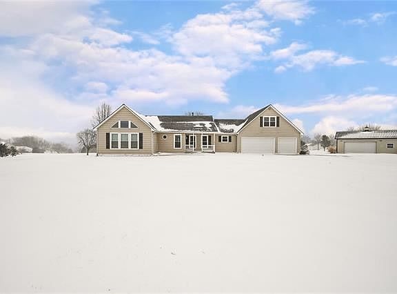 Amazing one level living in this inviting 4 bedroom, 2 1/2 bath ranch on a gorgeous 3+ acre lot. New interior paint throughout most of the home. A see-through fireplace separates the 7-window carpeted family room and the large kitchen/living space area. Main floor consists of 3 bedrooms, laundry, living/family room, kitchen and sunroom, which would make a great office space! Upstairs is a large open area which can be used as a bedroom, playroom or theatre room. The grand kids or teenagers would love this private space! This home has room for all your toys! It includes an attached epoxy floored 2 car garage, an insulated concrete floored detached 32x24 workshop with separate 200 amp service on its own meter and a full unfinished basement that could fit an additional 4-5 cars or it be converted to additional living space. Relax with a coffee on your covered back deck overlooking the neighboring pond. **This home has been virtually staged.