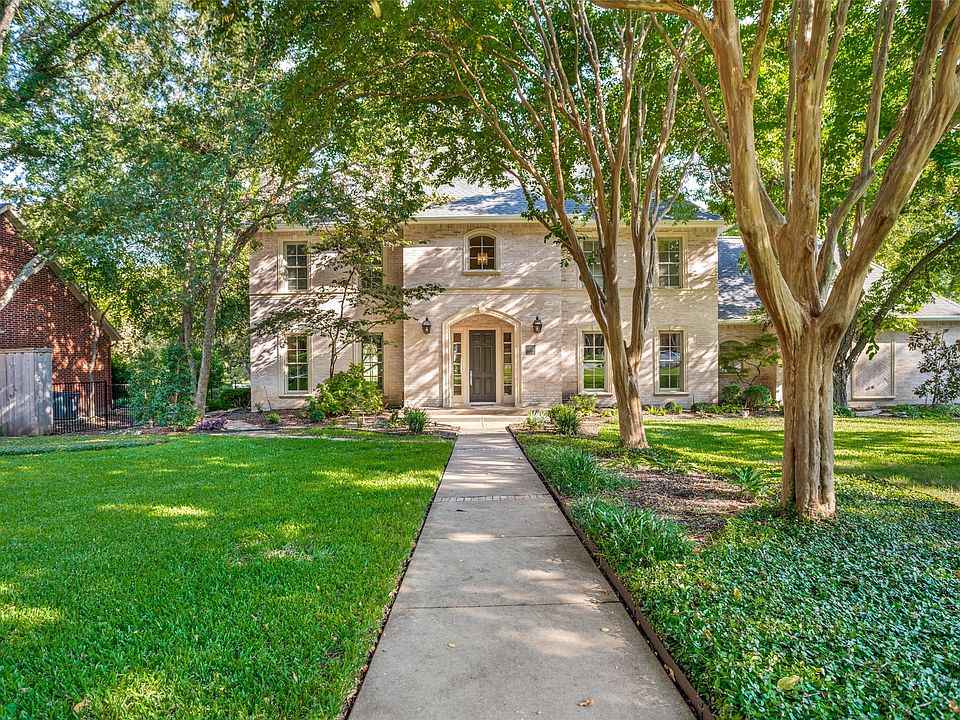 Welcome to Plum Creek, one of the most desirable neighborhoods in Midlothian. This beautiful custom home on .75 acres surrounded by trees will not disappoint! Front yard features mature landscaping with Crepe Myrtles and low maintenance flower beds. Colonial-inspired style, featuring natural limestone arch surrounds and sills, flanking gas lantern-style sconces, lend to that classic look. Wood framed custom divided light pane windows provide energy efficiently and beauty. Enter grand foyer with stunning wood staircase and hardwood floors throughout. Living room features gas starter fireplace, French doors proving views of the natural beauty of this property. Spacious dining area opens to kitchen and another set of French doors leading to covered patio. The kitchen has plenty of storage, gas cooktop and island with breakfast bar. Library with wood flooring and built in shelving is magnificent. Huge primary bedroom with separate vanities, garden tub and separate shower. Secondary bedrooms offer jack & jill bath. Spacious balcony with entrance from primary and secondary bedroom offers amazing views. Don’t miss the full bath with wood cabinet vanity and 1930 vintage chandelier! Step outside onto extended covered patio with lighting, speakers and ceiling fans, great for entertaining. Gas stub on back porch ready for that outdoor kitchen! Enjoy and relax among the natural beauty of this private property with mature trees and creek, backing up to green-space area. Aerobic septic system just installed in 2025. Oversized three car garage with side entry. See features list for more!