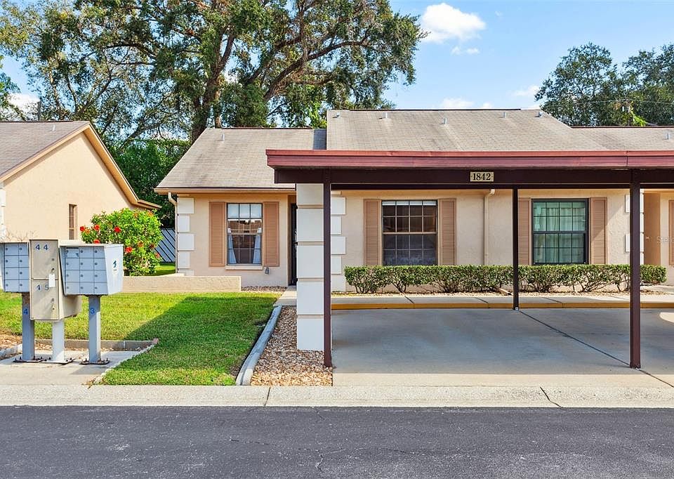This villa will check all your boxes! Gorgeous renovated 2 bedroom 2 bath villa in a 55+ community is maintenance free living. Beautiful easy to clean re-engineered wood flooring throughout. Granite countertops, stainless steel appliances, custom fans and lighting. Plenty of closets. Screened in lanai with electric blinds. Includes washer and dryer. Home is clean and well cared for. It is furnished but we can empty per buyer preference. Not in a flood zone, very low HOA fees, well kept and maintained grounds with a pool, covered parking and close to shopping, dining, entertainment, hospitals, beaches and more. Just 30 miles to the Tampa airport. Schedule your appointment fast before it's gone!