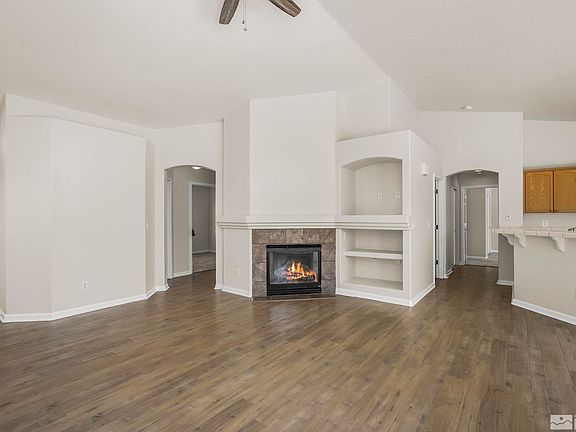 This 3 bed, 2 bath features an open floor plan with high ceilings and fireplace in the great room. Throughout the home you will enjoy new carpet and neutral paint that makes this home move-in ready. The kitchen has a breakfast bar, gas stove, stainless appliances, ample counter space. Outside is perfect for entertaining with its newer patio and large backyard.