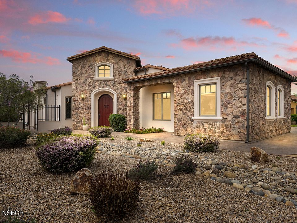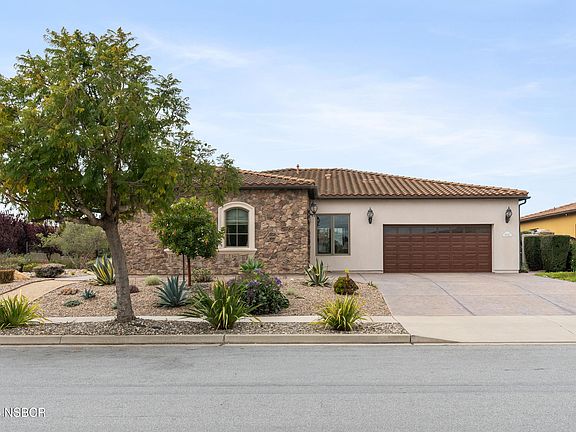 Highly Sought After Costa Pacific Home in Nipomo. This single-level home with approximately 2,546 square feet of living space offers 10 Ft. ceilings, solid wood doors and custom casement windows. Hardwood floors and exposed ceiling beams in the Mission Style living room with a gas fireplace is a great place to relax or entertain. The open floor plan seamlessly transitions into the chef's kitchen with custom cabinetry, stainless steel appliances, granite counter tops, breakfast bar and island. The spacious primary bedroom features a fireplace, wood flooring and ample-sized closet. As you make your way to the primary bedroom you will find a soaking tub to relax in, a generous sized shower and two separate sinks. The Covered rear courtyard with a fireplace is perfect for enjoying those cooler evenings. The rear courtyard also connects to the backyard and patio area overlooking the green belt/park area. Beautifully landscaped front yard gives it the curb appeal you will enjoy pulling up to. 3-car garage with plenty of room to park your vehicles.