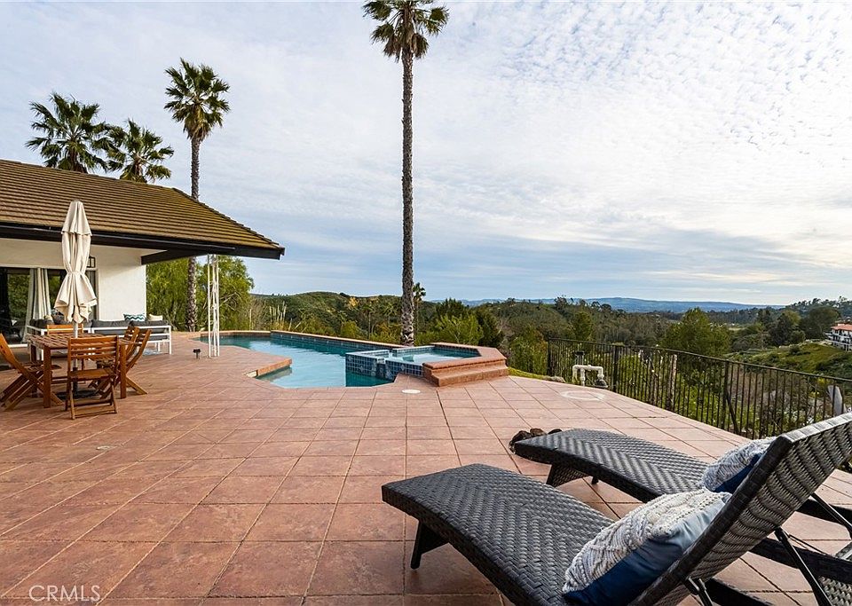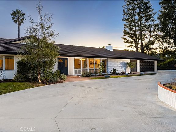 This mid-century modern ranch home in highly sought-after Cowan Heights is perched on a hill overlooking Peter’s Canyon and offers unlimited possibilities. The single level 4 bedroom, 3 bath 2650 SF house rests on ¾ acre. The charming property boasts 180* views of the Canyon and city lights below and is ideally positioned to offer maximum privacy. The front yard has an oversized curved driveway creating added parking for the auto enthusiast or for an RV. The corner lot allows for expansion as there is ample usable land space for an addition or separate casita. This home has a pool and spa with well-manicured and mature grounds, a covered patio with low maintenance tile surrounding the pool and outdoor seating spaces. The home features floor to ceiling windows, sliders, and French doors, where natural light illuminates each space creating an airy and open energy throughout. The spacious kitchen has loads of cabinet space and a nice flow to the living room. Discover added space and function in a multi-use room that could serve as an office or 5th bedroom. It is also the ideal space to expand the kitchen. There is an open breezeway between the garage and house that could be converted to extra square footage if desired. This home is within the award-winning schools of Arroyo, Hewes and Foothill High. Equestrian, hiking and biking trails, shops, restaurants, and outdoor activities are minutes away, with nature's beauty as the backdrop.